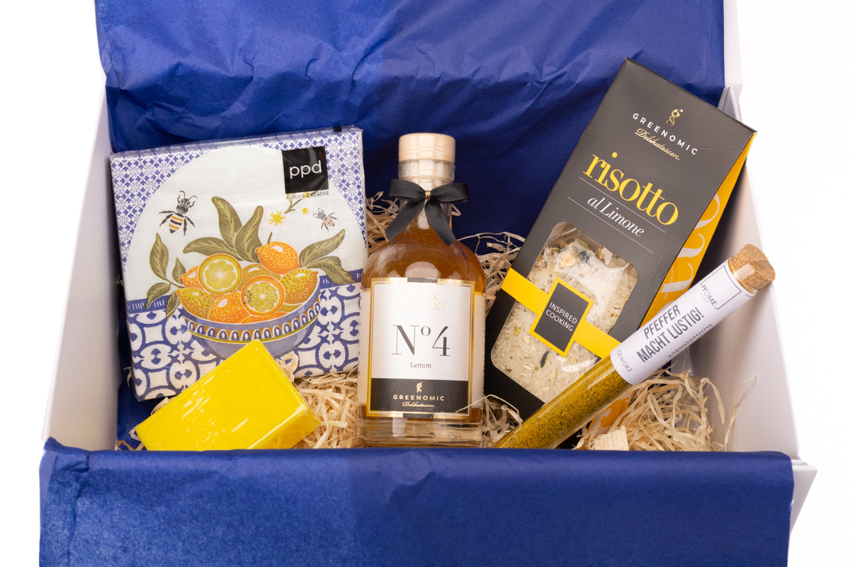 Abgerundet wird jede Geschenkbox mit der persönlichen Grußkarte. Hier kannst Du aus vielen Motiven die passende Karte auswählen und uns Deinen Text mitteilen.